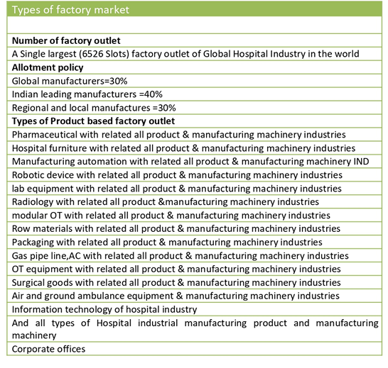 • 1. Number of Factory outlet A single largest(6526 slots) Factory outlet of Global Hospital Industry in the world.